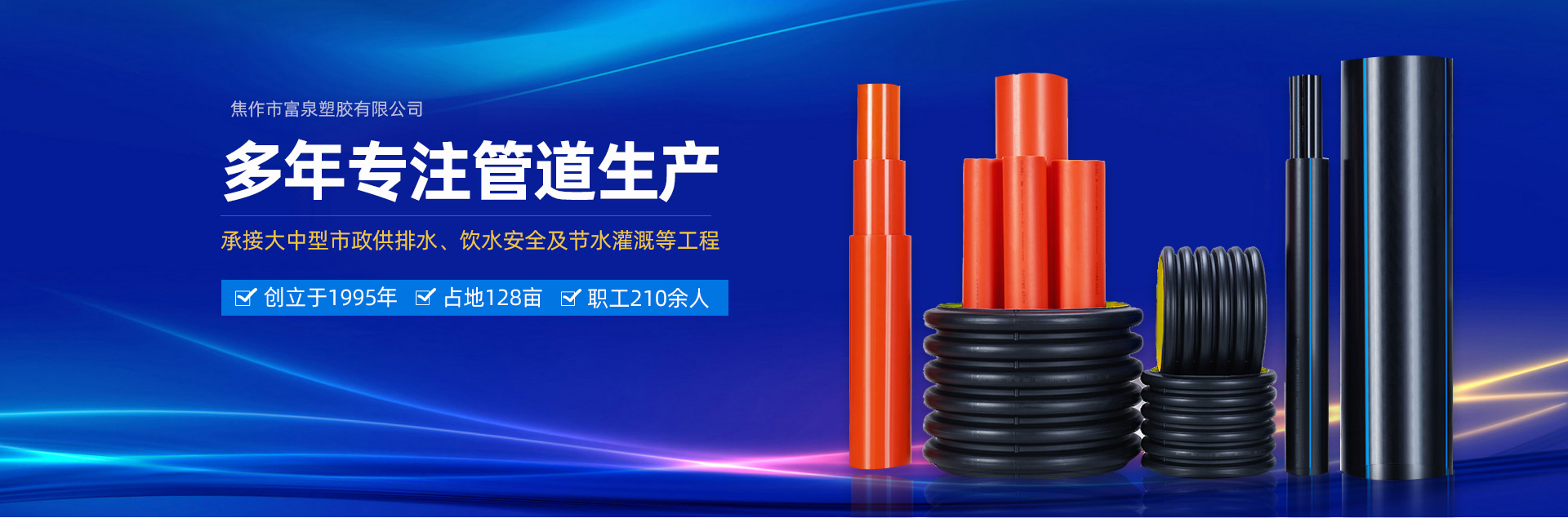 - 焦作市富泉塑膠有限公司,創立于1995年,是一家集研發、設計、生產、銷售為一體的大型管材企業。公司位于太極故里、黃河之濱一一河南焦作溫縣。公司占地128畝,現有職工210余人,其中具有中技術職稱的19人。生產、檢驗設備58臺(套),包括PVC實壁管生產線11套、PE實壁管生產線12套、HDPE雙壁波紋管生產線6套、PVC雙壁波紋管生產線5套,檢驗設備14臺(套)。主要產品有:Φ20mm-630mm、各種壓力規格的PVCU、PVC-M、PE給水管材,PVC-U節水灌溉管材,HDPE燃氣和礦用管材,DN200-800mm的HDPE、PVC雙壁波紋管及各種噴灌、滴灌工程材料。承接大中型市政供排水、飲水安全及節水灌溉等工程?! 「蝗苣z公司重視產品的質量、安全、環保和節能,在同行業中率先完成了“新華節水產品認證”,全方面通過OHSAS18001職業健康安全管理體系的一體化導入,并建立起規范的現代企業管理體系。公司以“質量”為先導,采用質量跟蹤、多環節把關的方法,組建具有行業水準的企業技術檢測中心,常年委托水利部節水灌溉設備檢測中心、河南省產品質量監督檢驗院對產品跟蹤檢測,并由中國人民保險公司承保產品質量。公司連續多年被河南省水利廳確定為“安全飲水設備、節水灌溉設備”定點生產企業,并獲得“中國名優產品”“質量、服務、信譽AAA企業”“河南省**產品”“河南省水利企業”“河南省守合同、重信用企業”等榮譽稱號。 富泉塑膠公司堅持“用戶為上”的服務理念,長期以來,全方面關注客戶價值,不斷提升服務水平。服務隊伍常年為客戶的產品設計、施工、安裝提供合理的方案和全程細致、周到、**、快捷的技術服務。公司自成立以來,一直堅持以人為本的宗旨,塑造企業形象,并致力于新產品的開發,憑借雄厚的技術開發能力,先進的工藝制造流程,嚴格的質量管理保證體系,優良的售后服務網絡,已成為河南省大的飲水、灌溉及排水管材設備制造商。產品暢銷全國,而且還以公司雄厚的綜合實力在業界中占據著重要的地位。